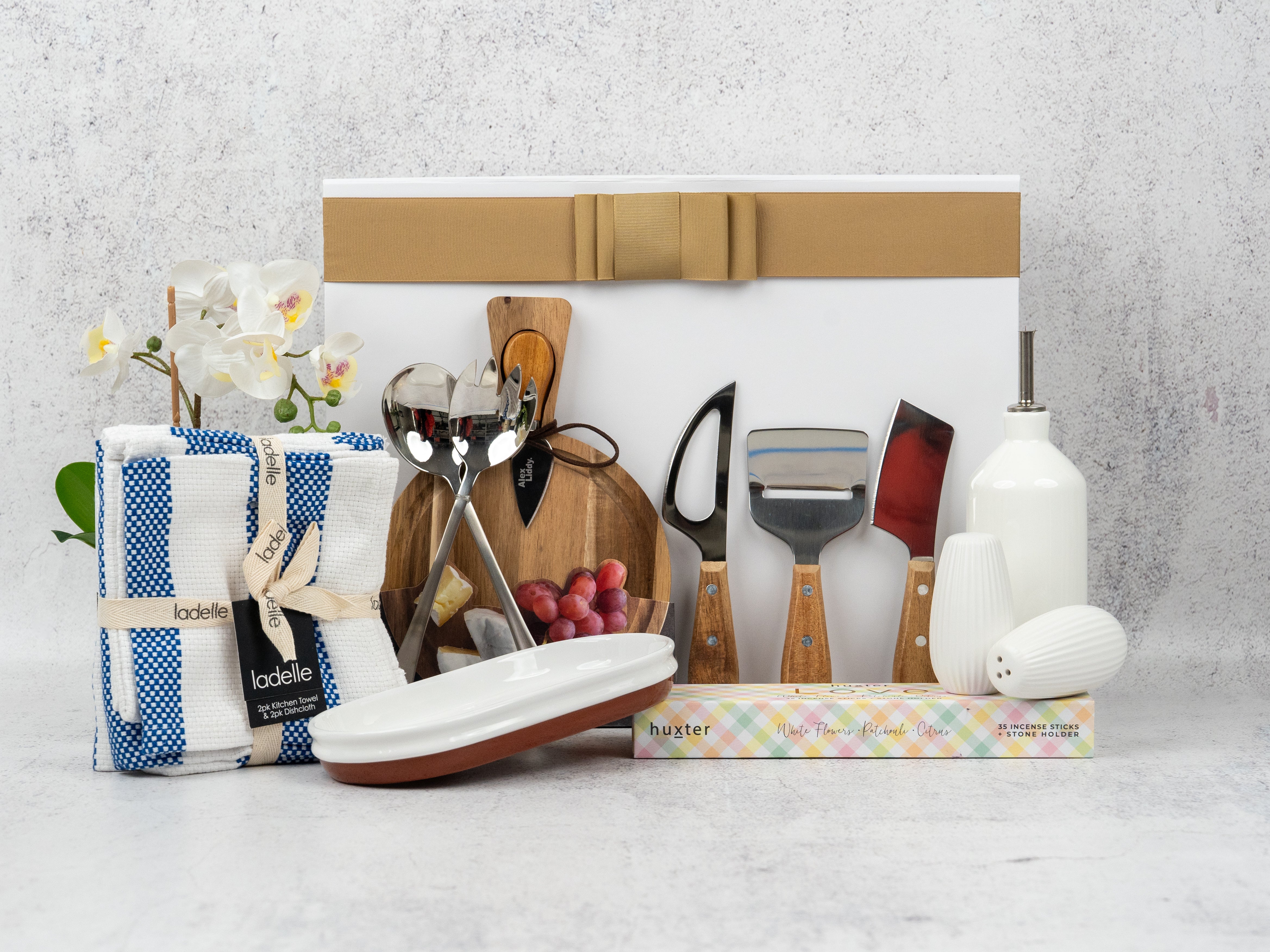 A beautifully crafted round serving board paired with a matching knife, designed for effortless entertaining. The Alex Liddy signature style brings warmth and sophistication to any cheese or charcuterie arrangement. A centrepiece that does all the talking.
